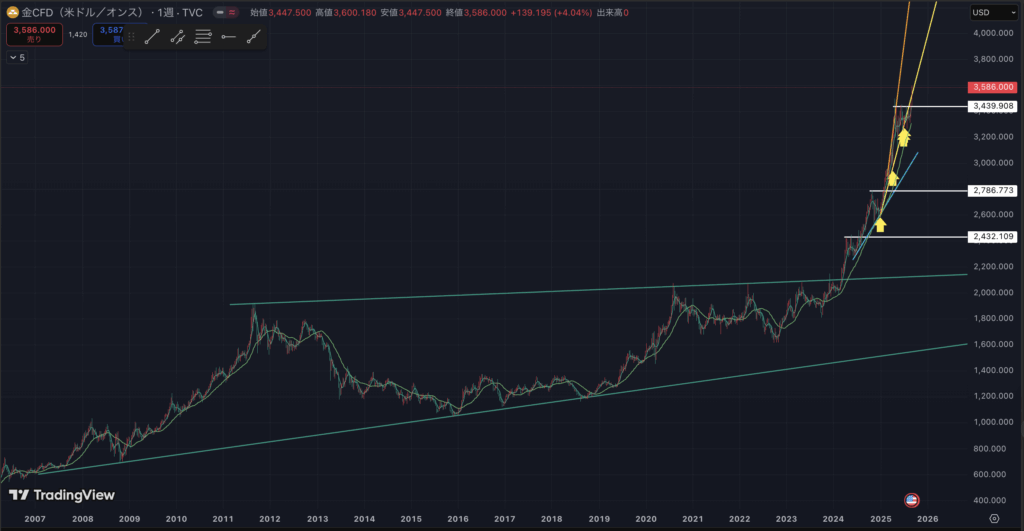 金CFDの週足です。