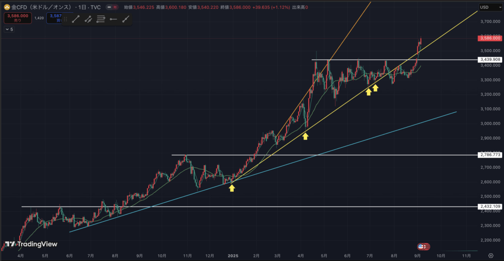 今年の4月から4ヶ月間抑えられてきたラインですから、上昇に勢いがあります。