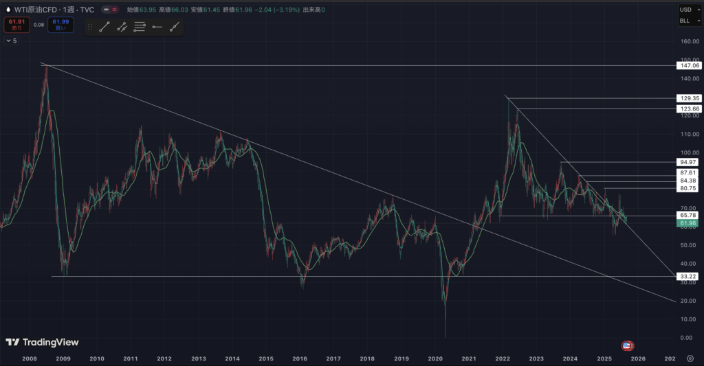 まずは原油CFD週足です。