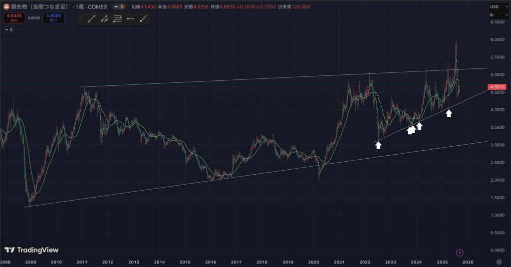 まずは銅先物月足です。