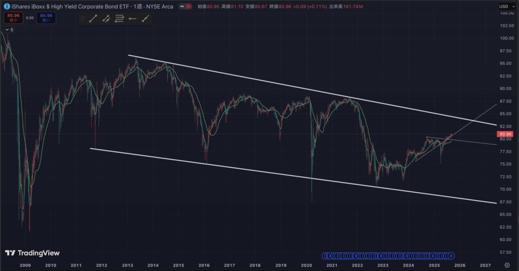 HYGの週足です。