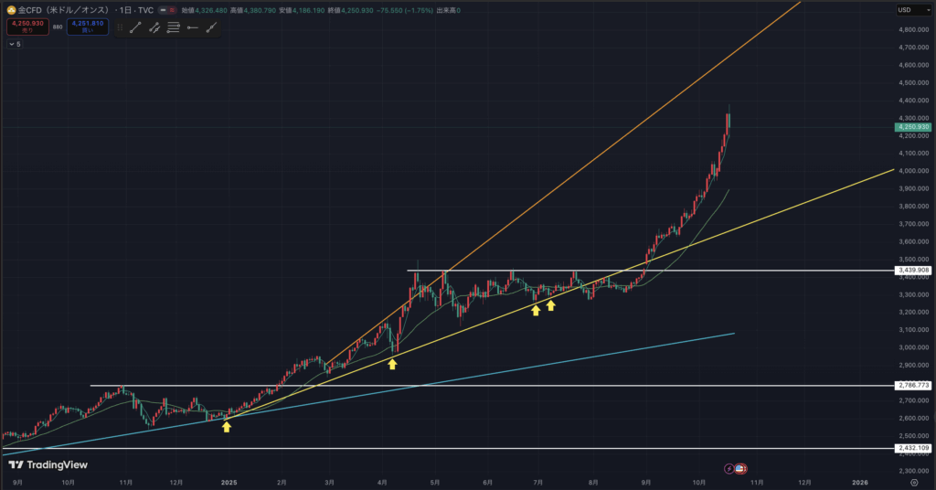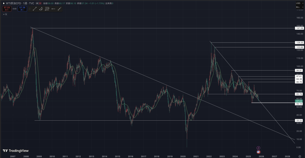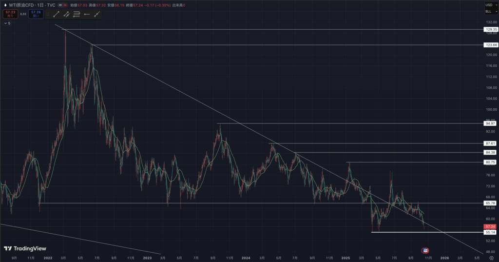 もう少しで今年4、5月の安値に届きますが、そこが下げ止まる目処となりそう。