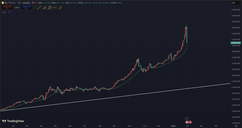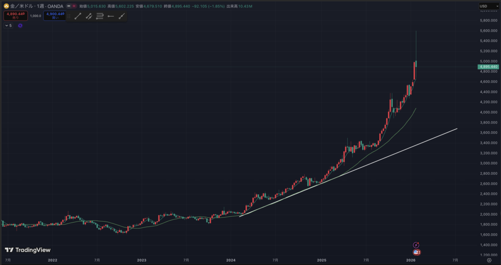 今まで金はCFDを見てきましたが、ドル建てで見ていきます。