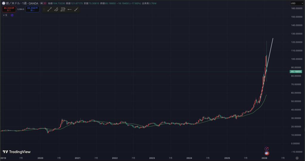 銀の週足です。