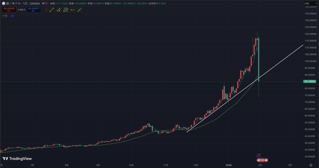 ただ、今回の下げ幅は金より銀の方が大きかったようです。