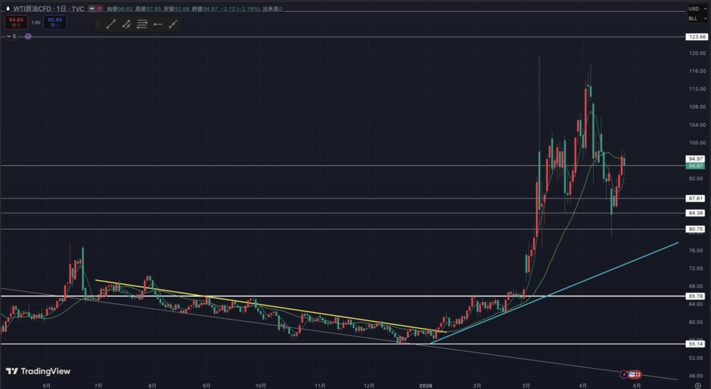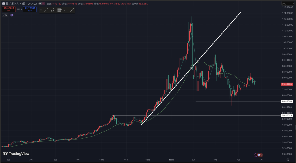 もしこのまま下に行った場合は、64ドル付近が堅そうです。