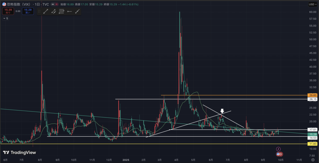 VIXの日足です。