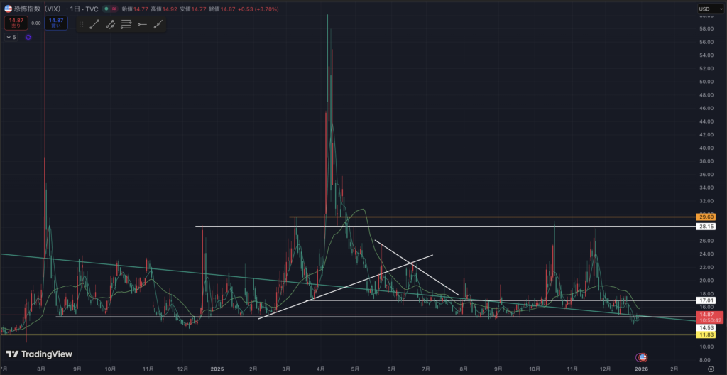 昨年12月には12.8付近まで低下しましたが、今回そこまでは下げず13.4付近で反発となりました。