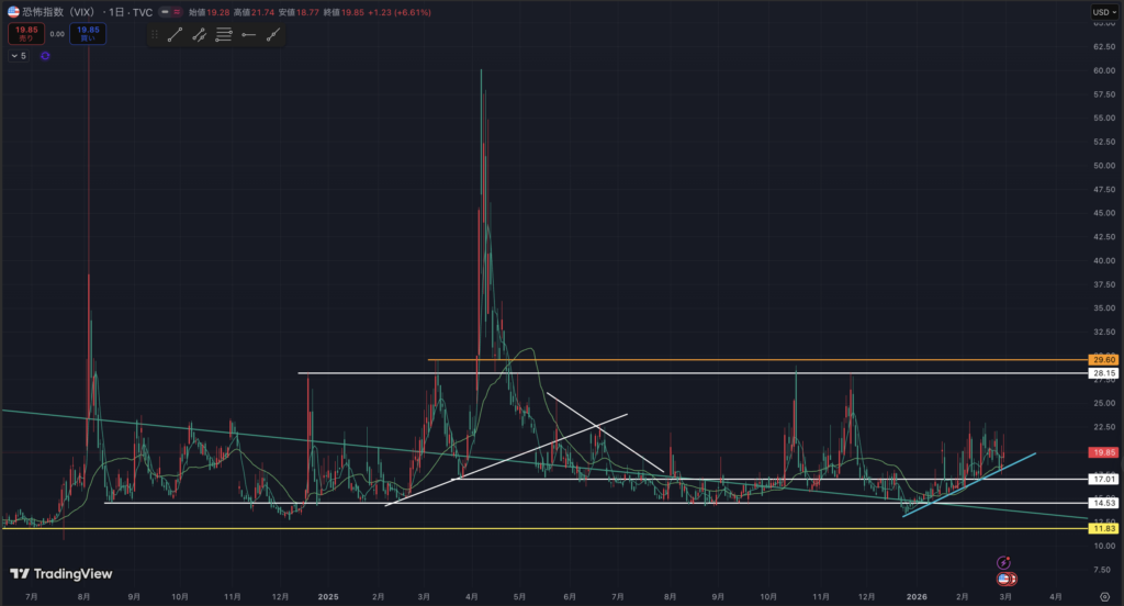 VIXの日足です。