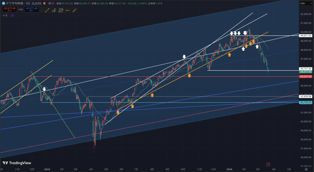 ダウ平均日足チャートです。