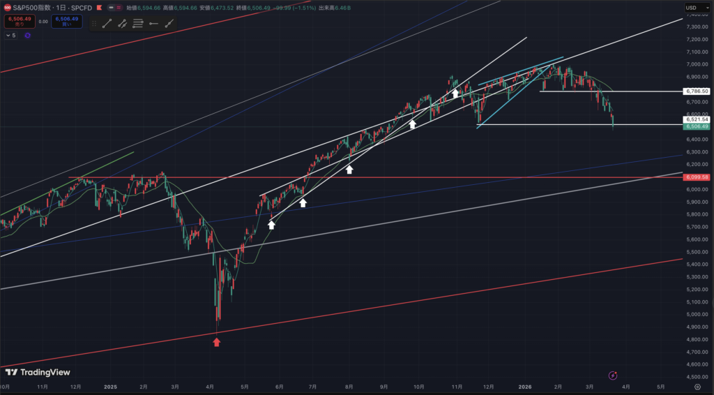 S&P500の日足チャートです。