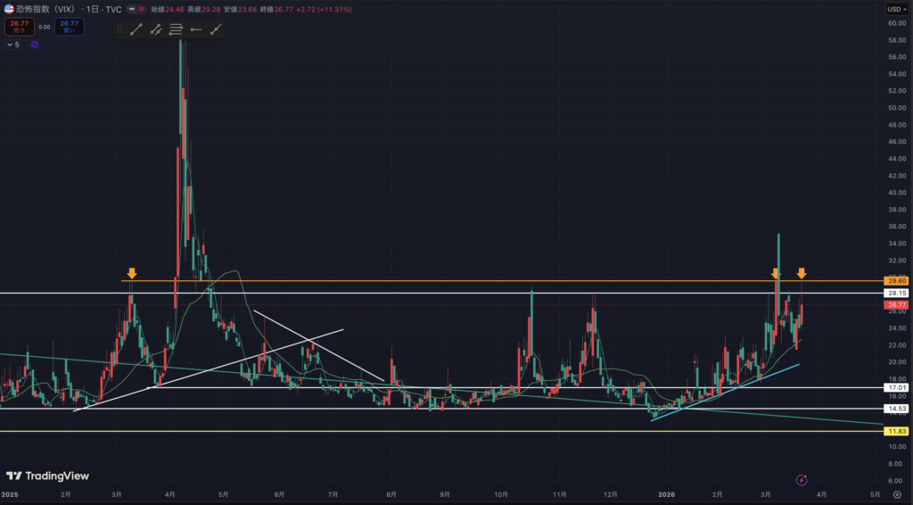 VIXの日足です。