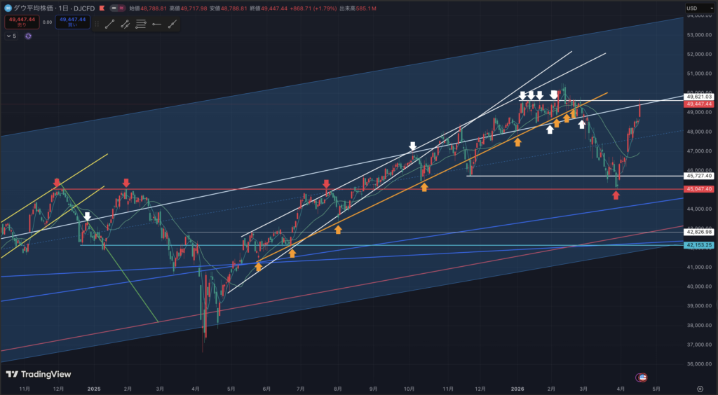 ダウ平均日足チャートです。