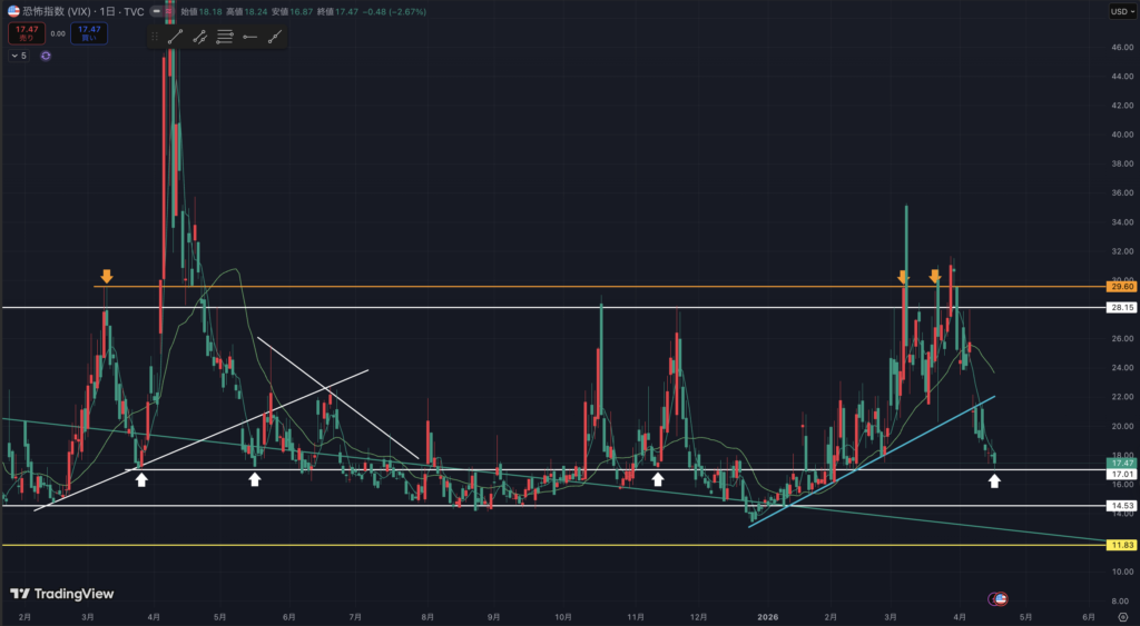 VIXの日足です。