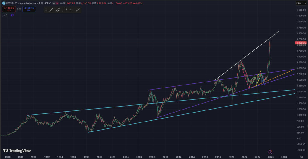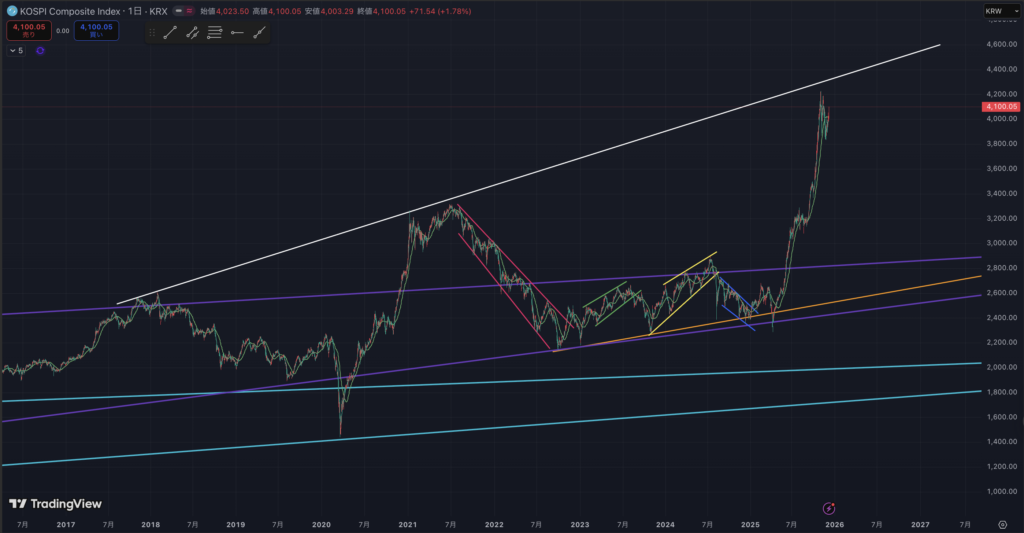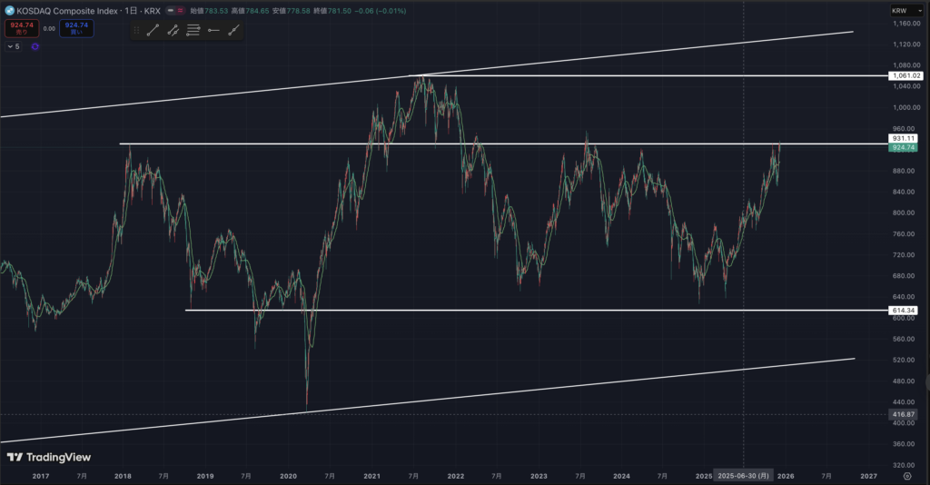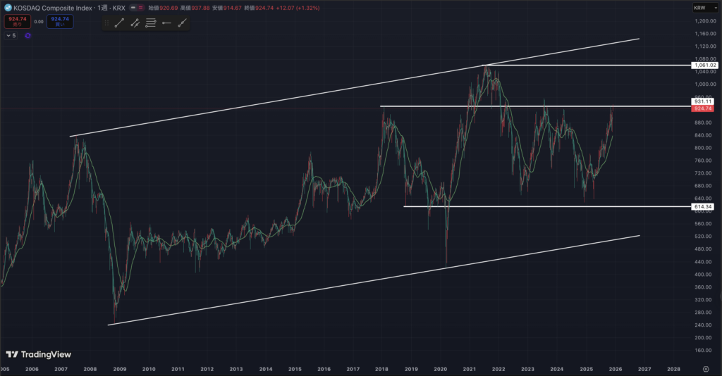 今日は韓国の指数KOSPIとKOSDAQを見ていきたいと思います。