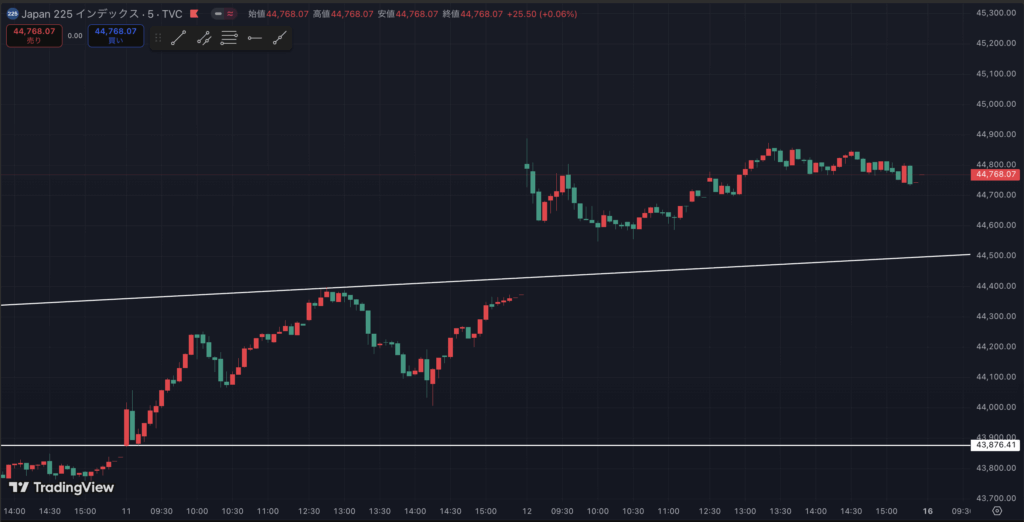 SQで上に飛んだ時は、だいたいその後一旦下がるパターンが多いので、先物で狙うにはチャンスです。
