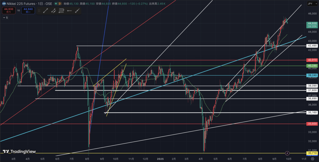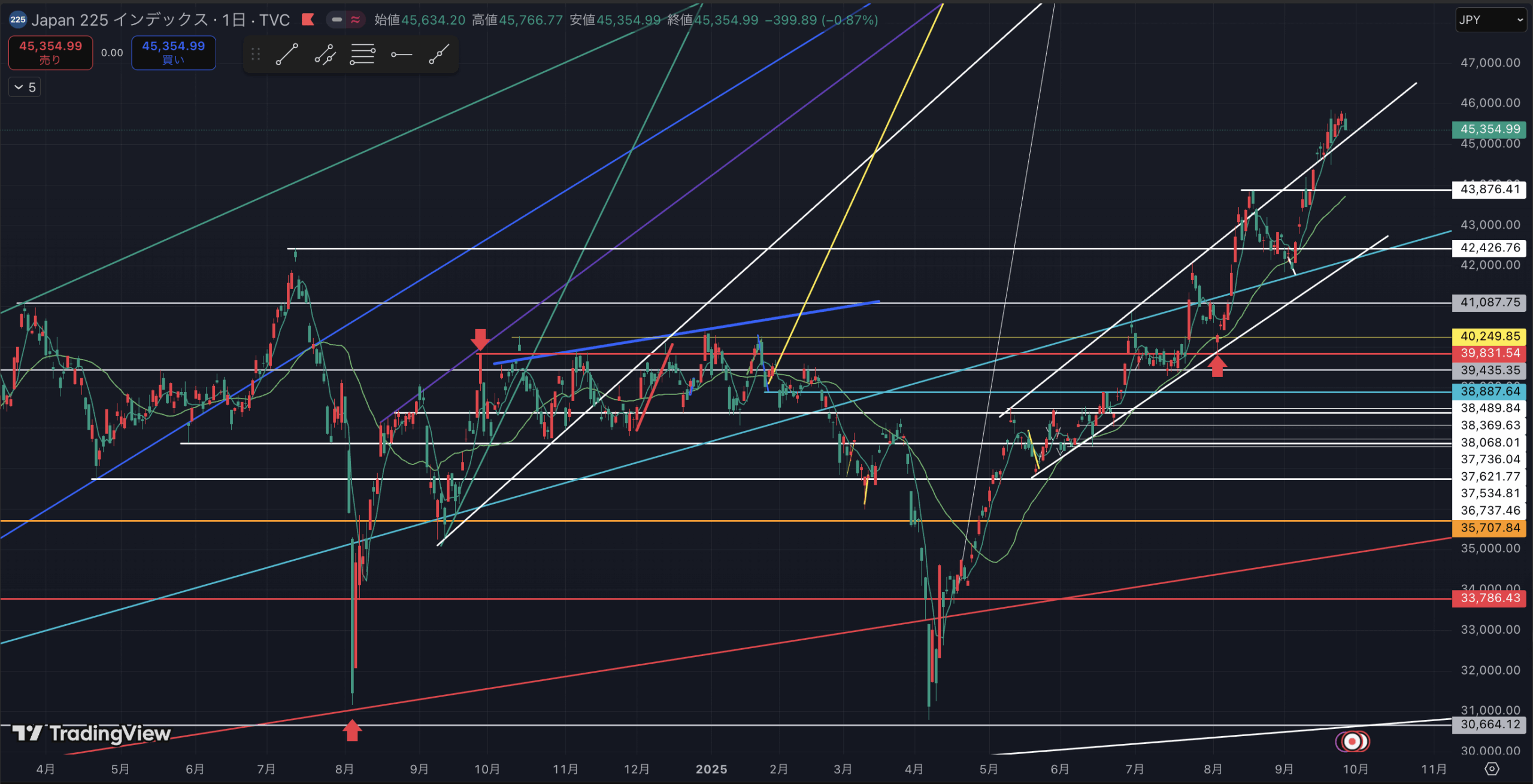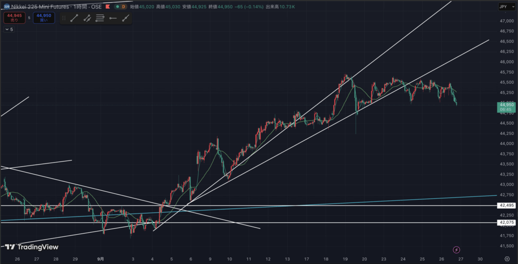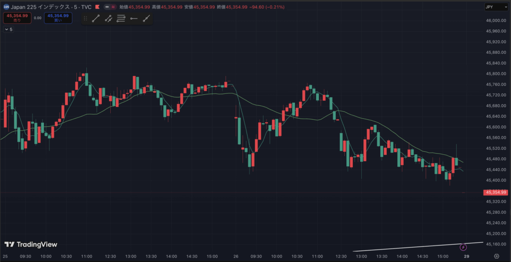 45400円付近サポートになっているようでしたが、最後大引でガクッと下げたようですね。