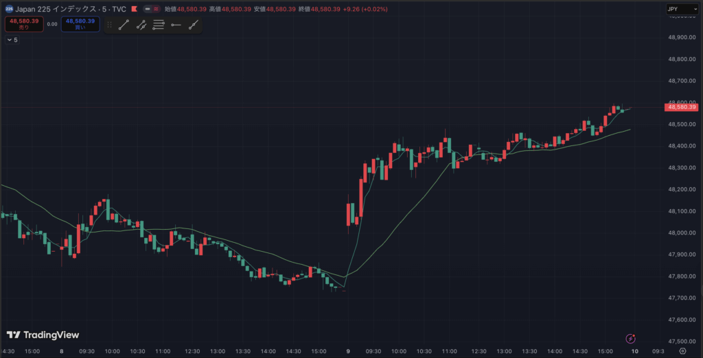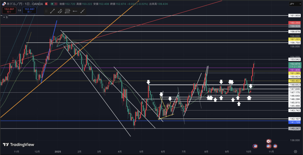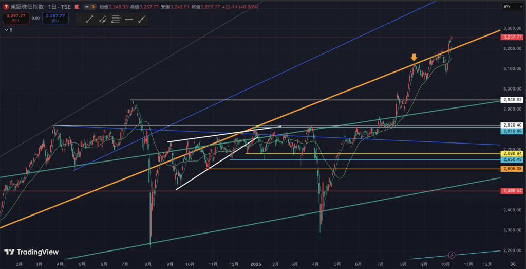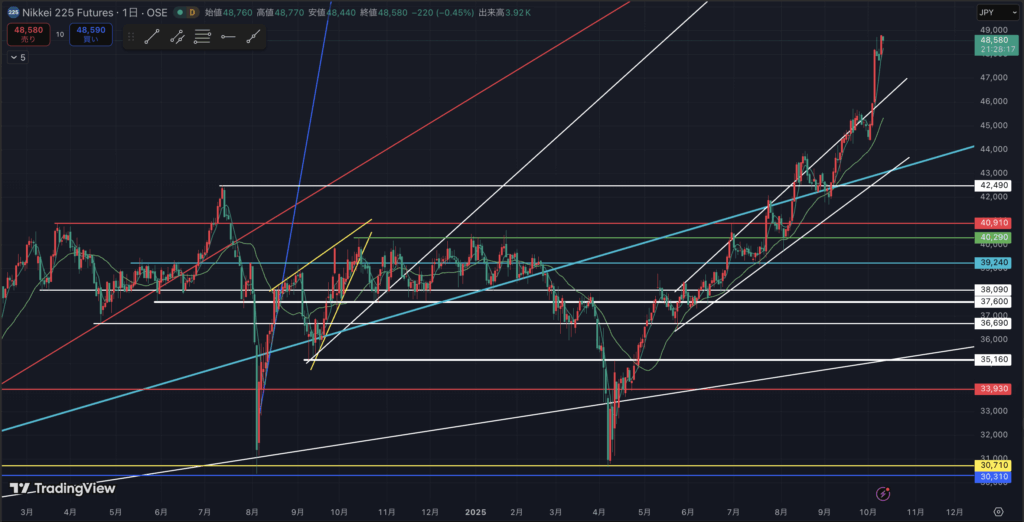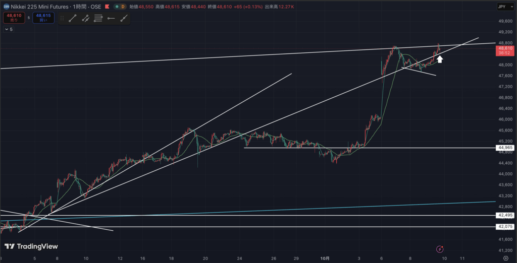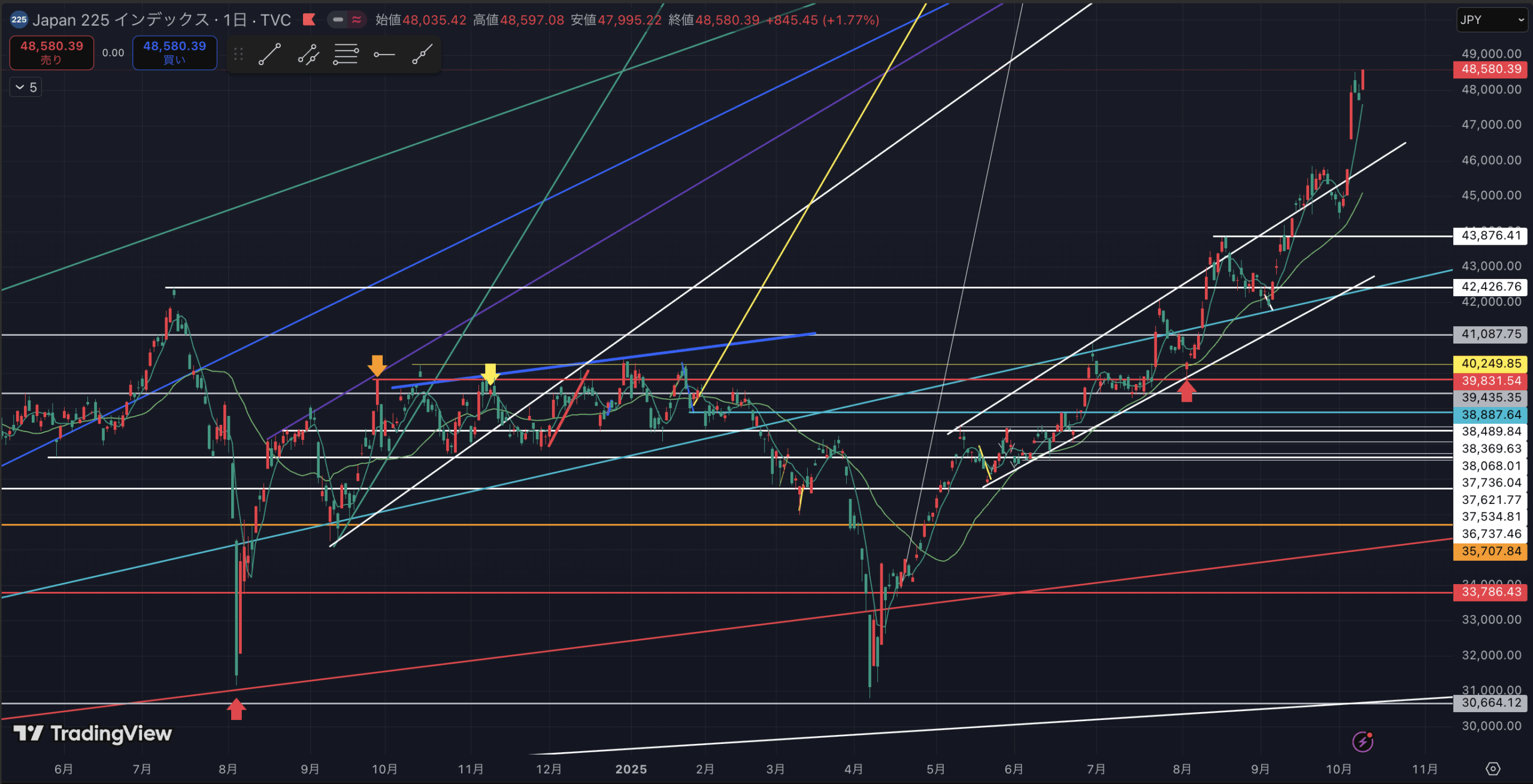 2日連続の上ひげをつけた陰線を振り切り、史上最高値更新となりました。
