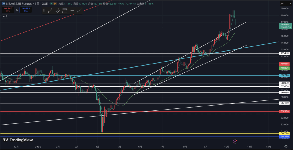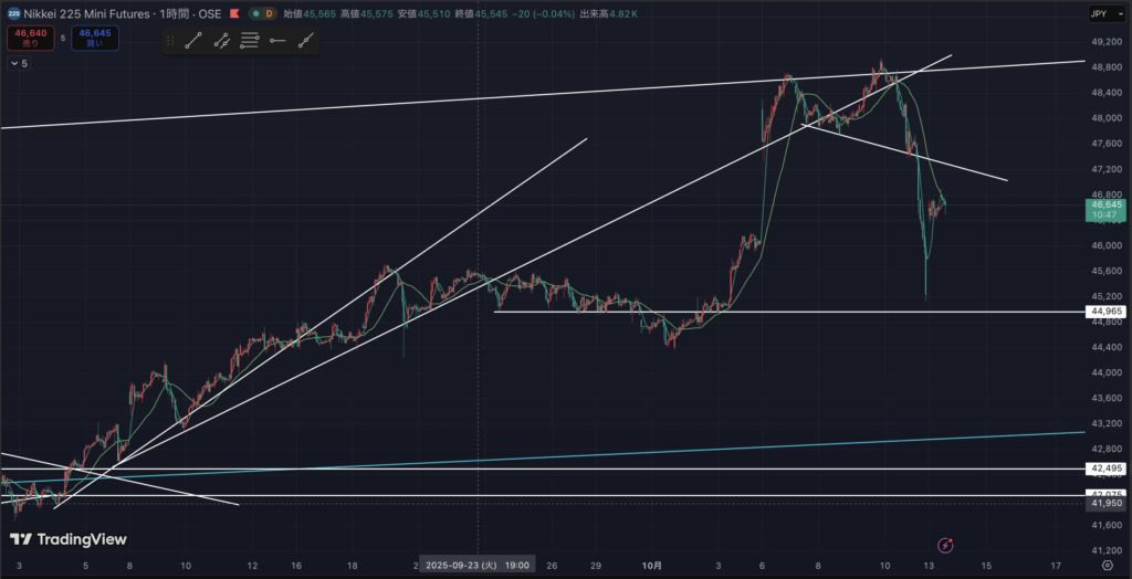 ナイトからまた少し窓を開けて上で始まりましたが、移動平均線に押されて下に向かっています。