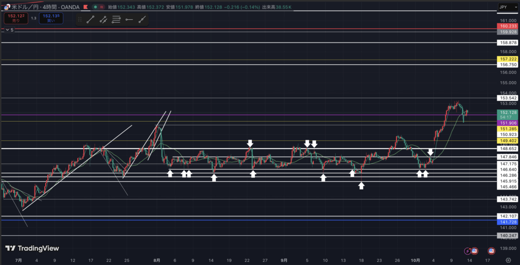 土曜日深夜に151.17円くらいまで突っ込みましたが、現在152円まで戻しています。
