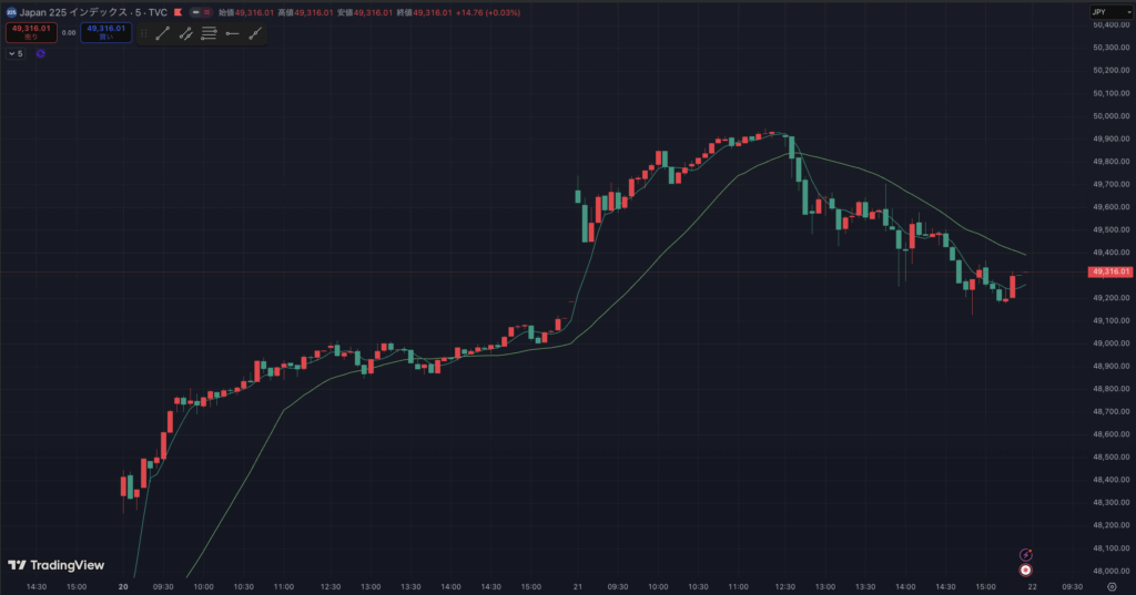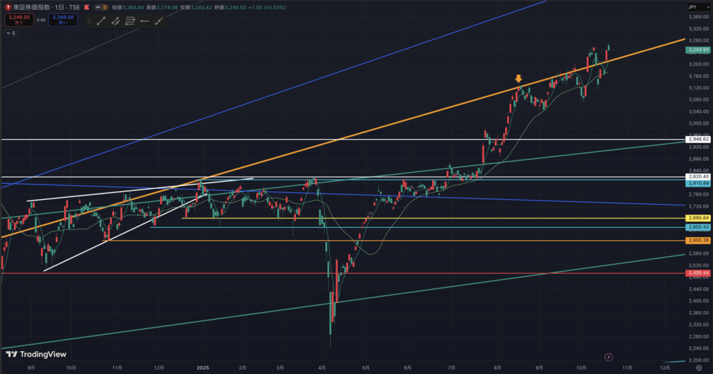TOPIXも陰線ですが、場中の史上最高値を更新したようです。