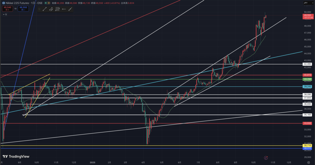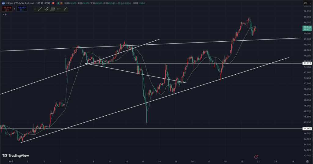 しばらくは5万円を足固めするような動きとなるか、それともあっさり5万1千、2千と上げるか。