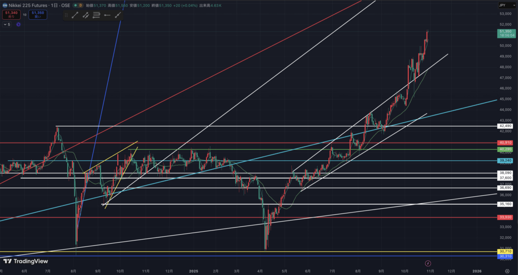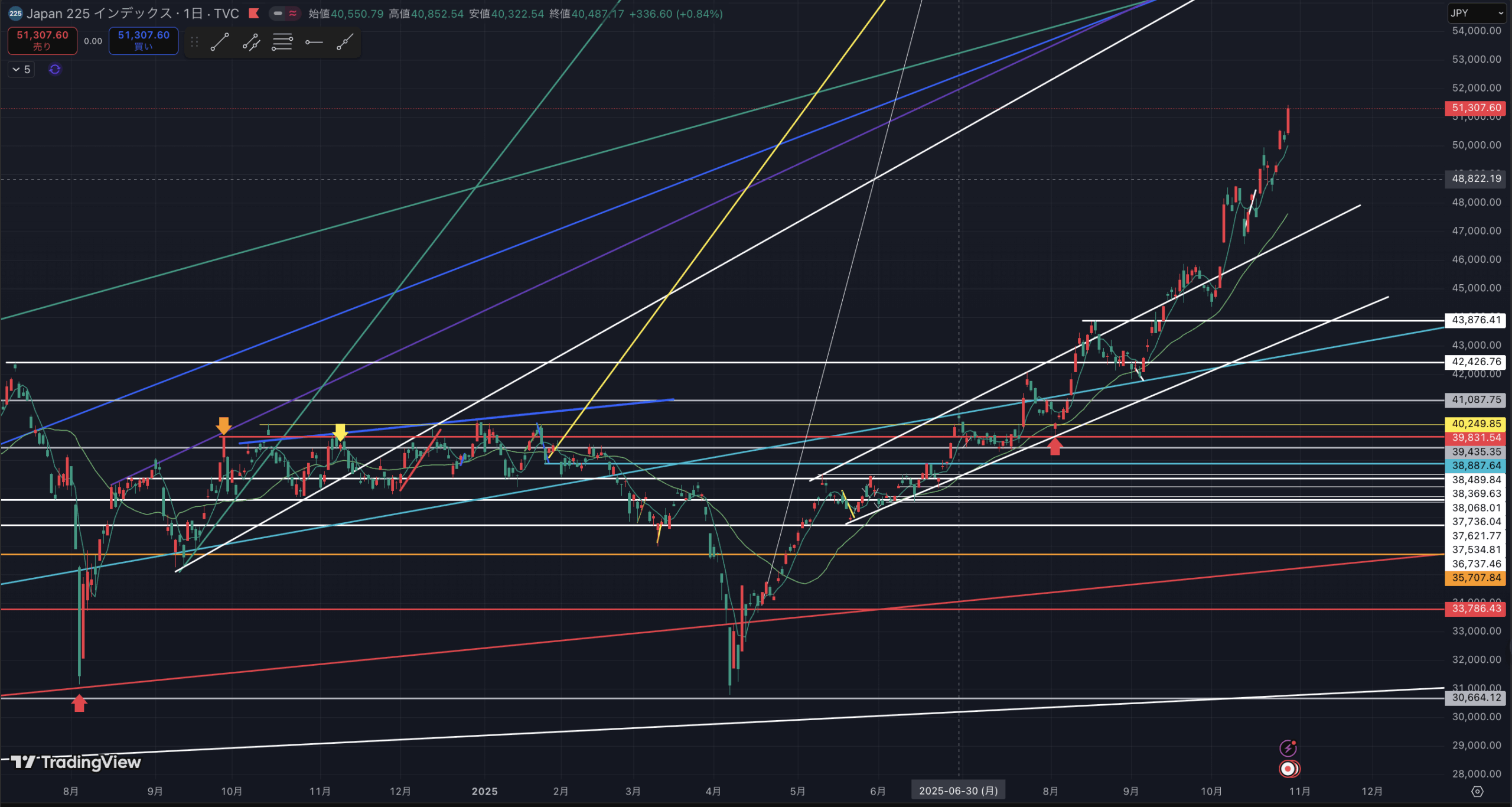 5万円が定着したかと思えば、あっという間に51000円台に。
