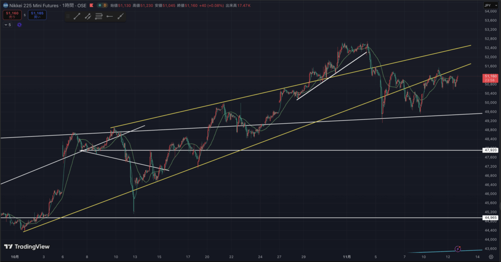 下の場合は、ラインでどういう動きをするかが見るべきところ。