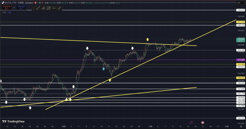 タッチして下ひげ作ったので、明日以降は上昇の可能性が高そう。