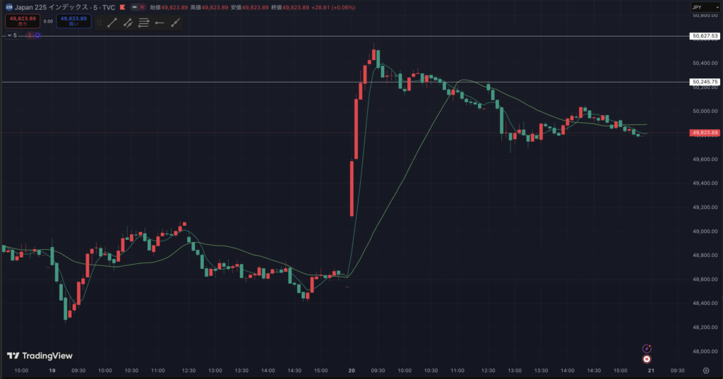 窓を開けて勢いよく上昇し、9時半頃に今日の高値をつけました。