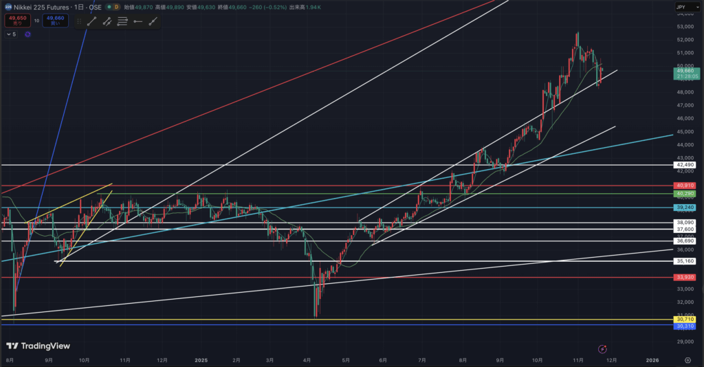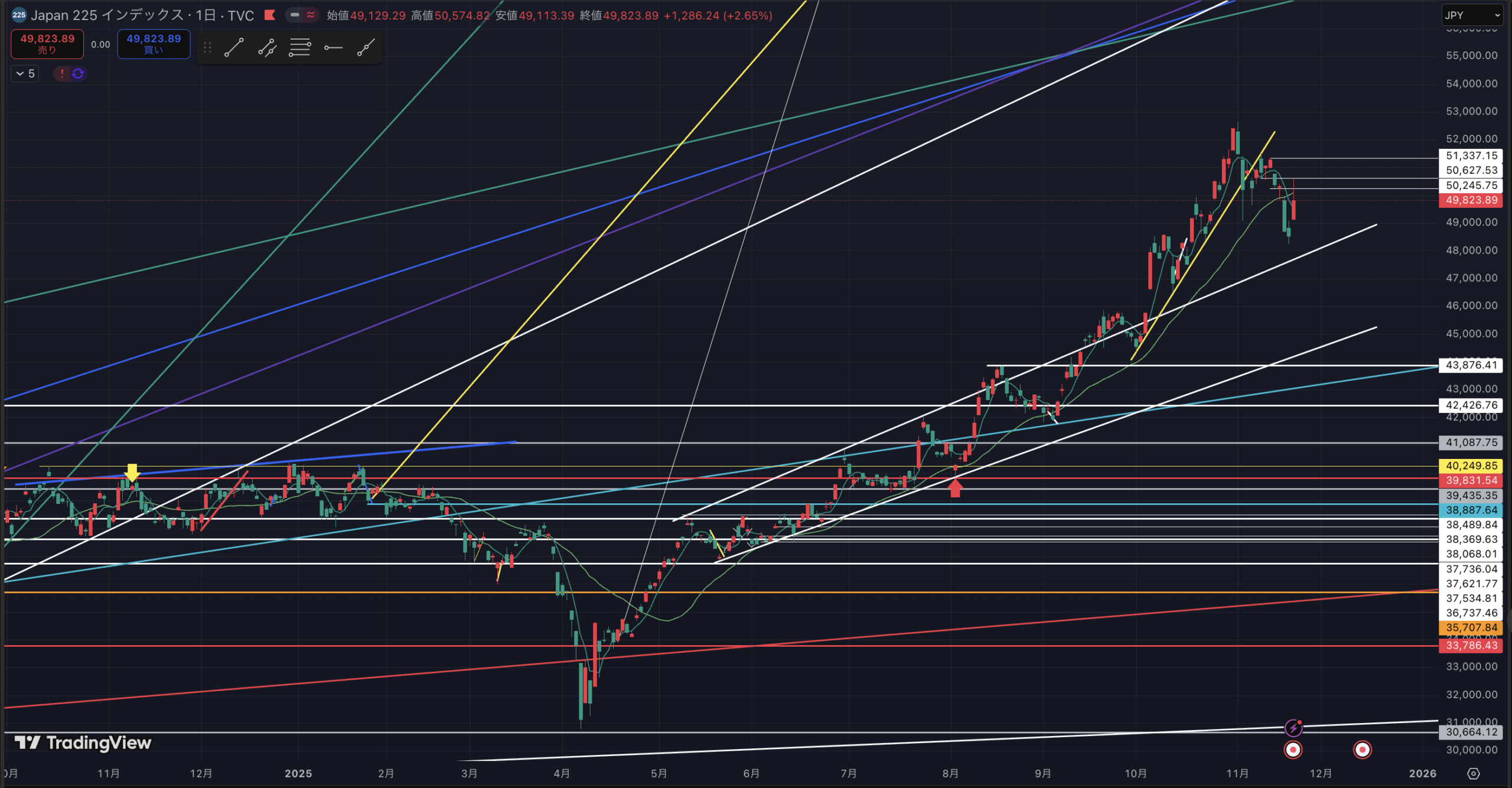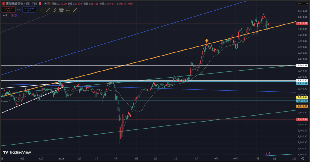 TOPIXも上ひげで、わずかに25日線を割り込んでいます。