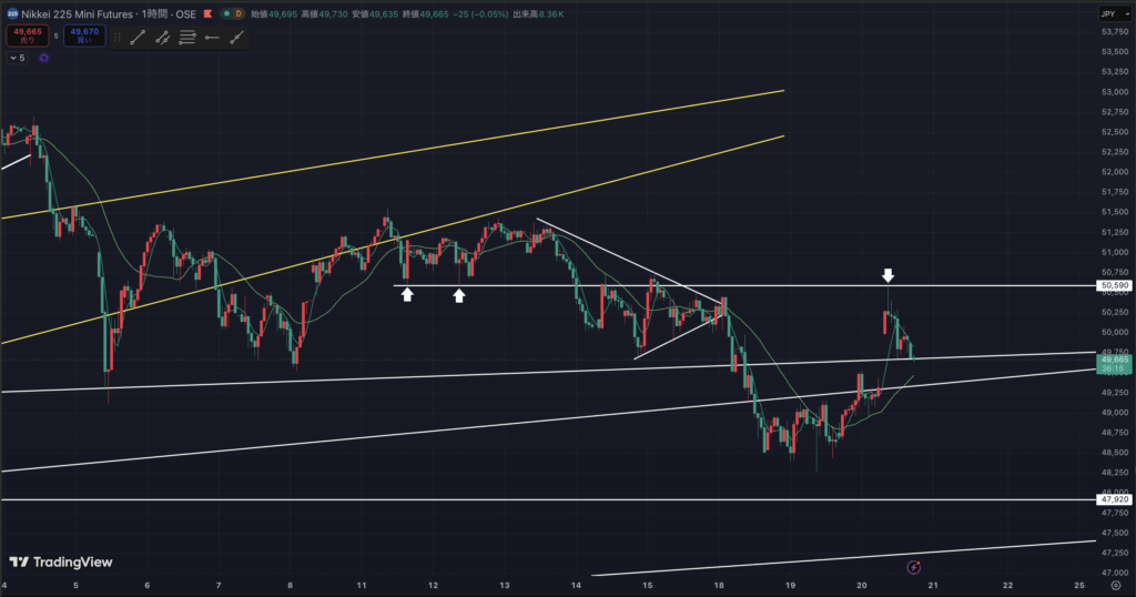 今日の高値は11、12日の安値のラインでちょうど止まりました。