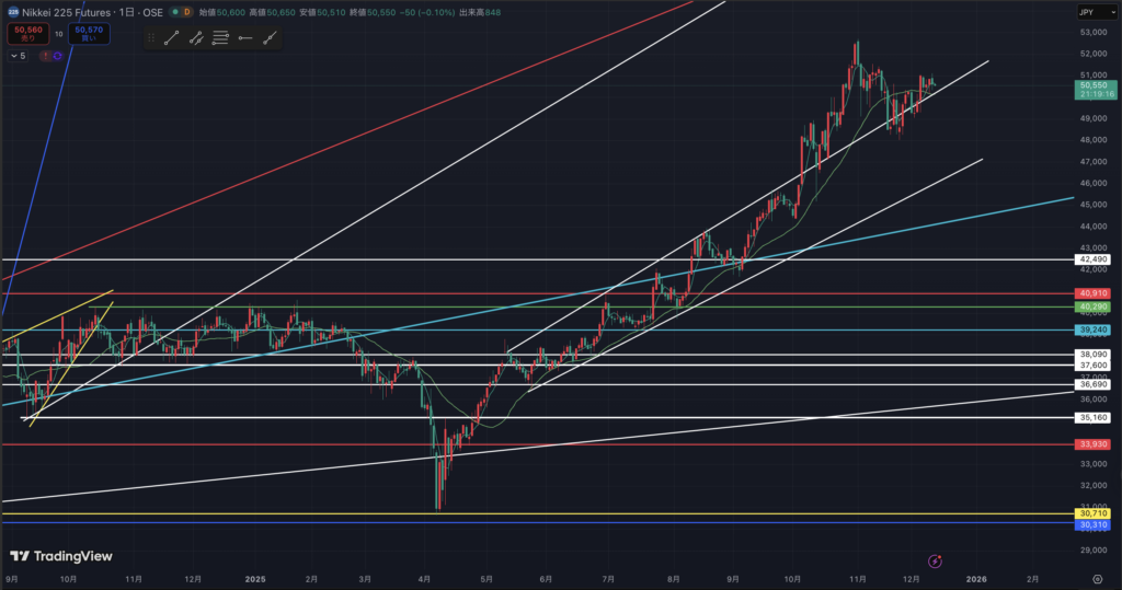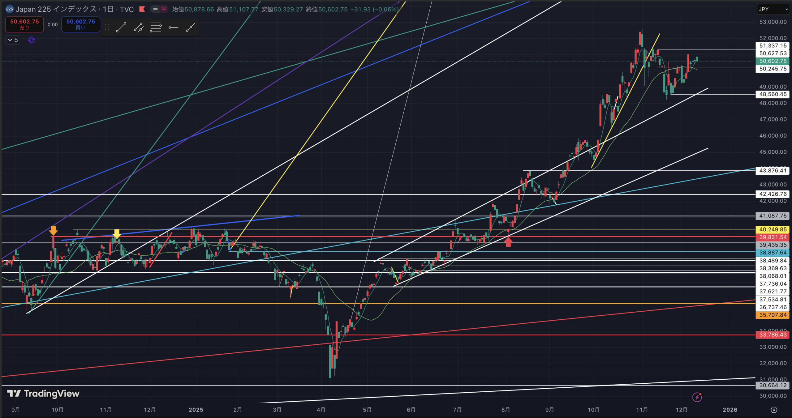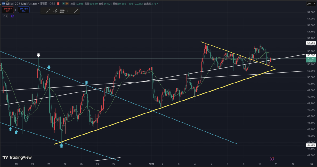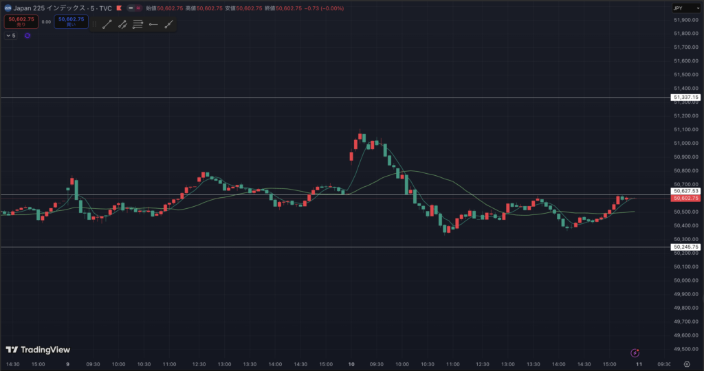 寄り付き直後に51000円を一時的に超えましたが、その後は下落。