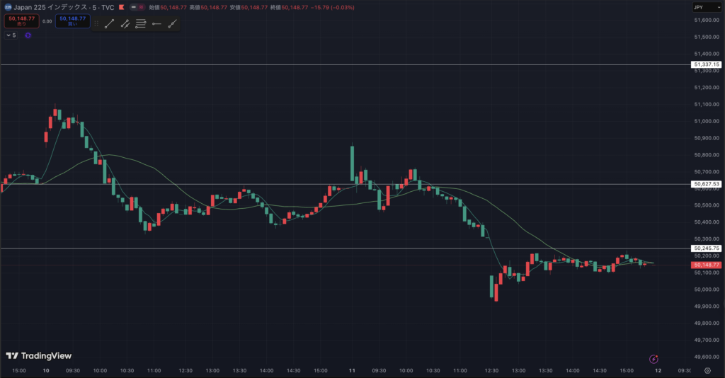 下落しましたが、ローソク足の実体は5日線で下げ止まったようです。