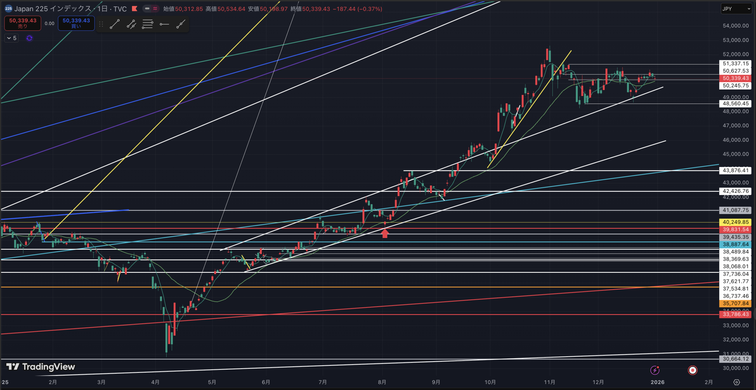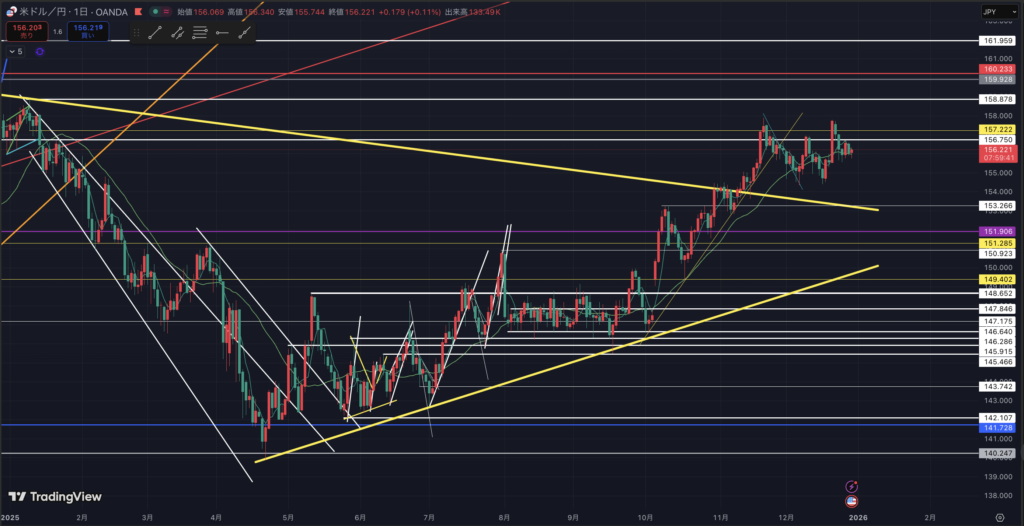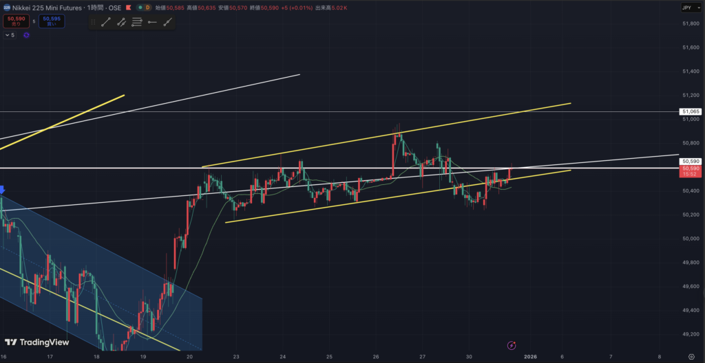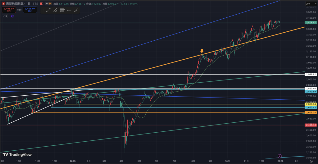 下値サポートを下抜けた後に戻し、ラインがクロスしている位置に。
