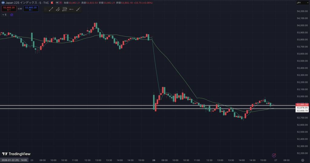 大幅下落で5日線もまた割れてしまいました。