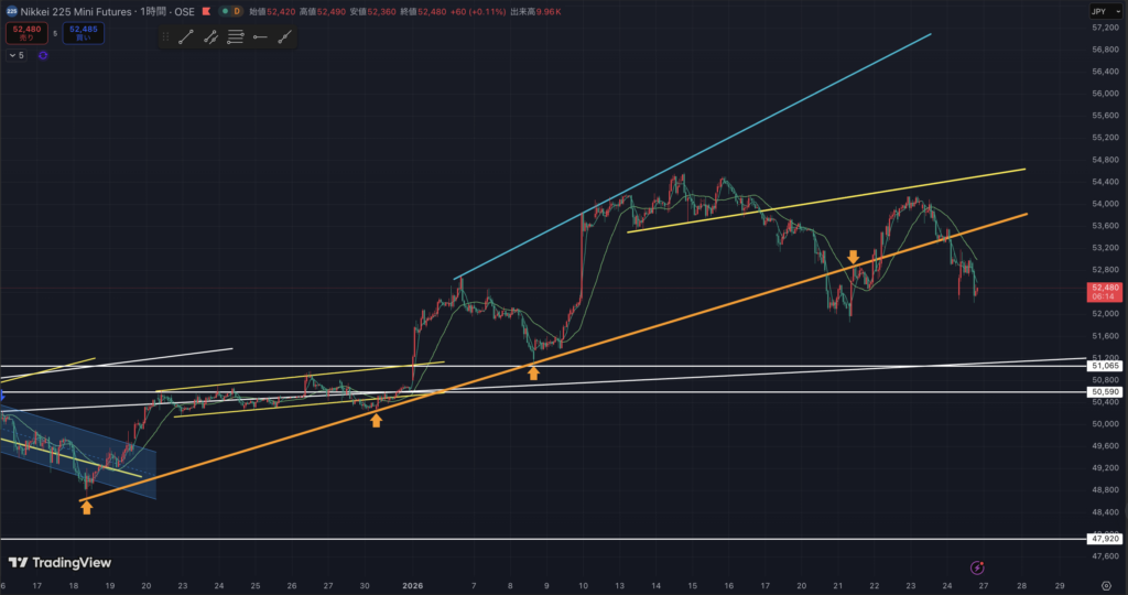 先物ミニの1時間足です。