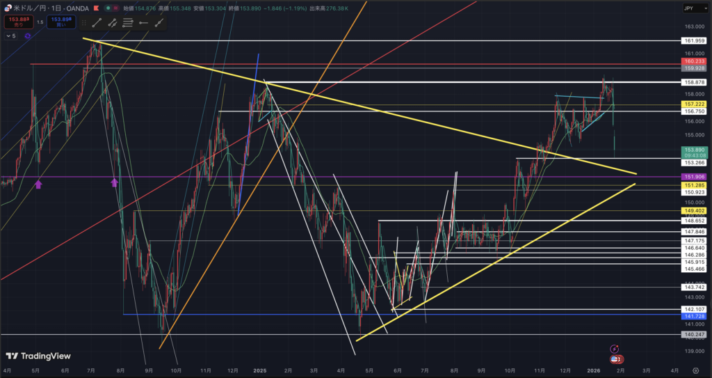 159円台から一気に153円台に。