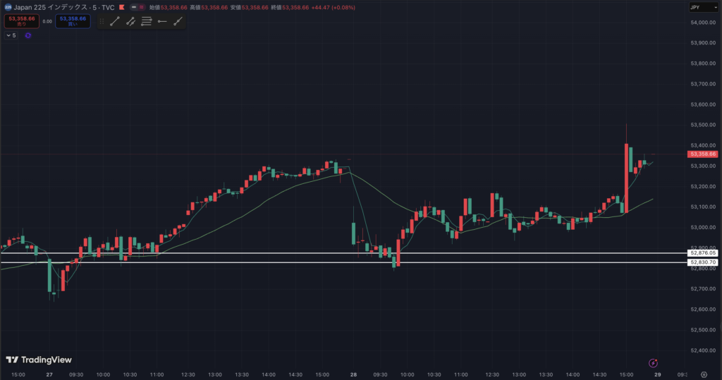上げ幅は25円でも、下方向にはそれなりに値幅がありました。