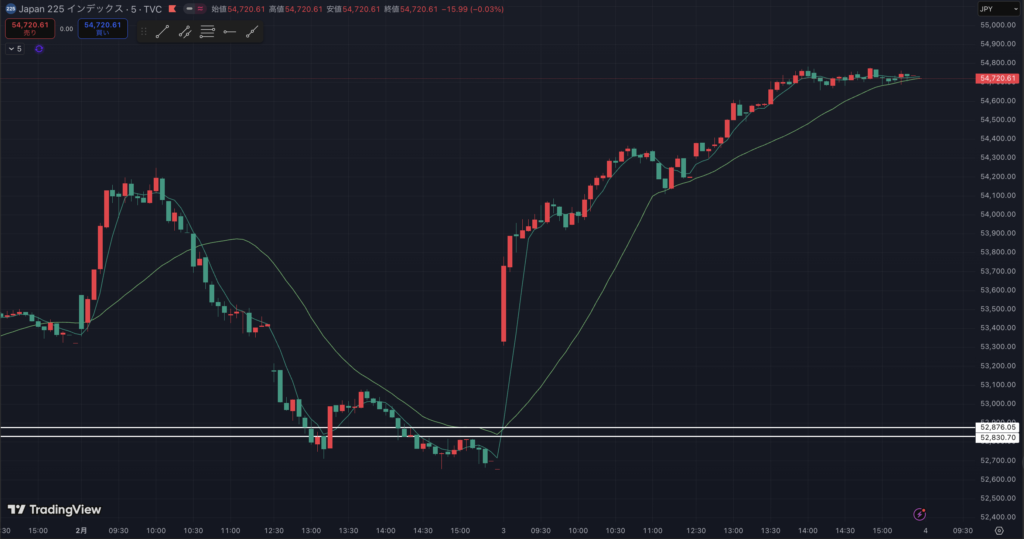 寄り付きから大きく窓を開けて上昇し、ほとんど押し目なしの上昇。