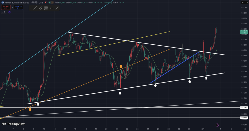 短いウェッジだけど、上抜けた勢いは数日続くパターンが多い。