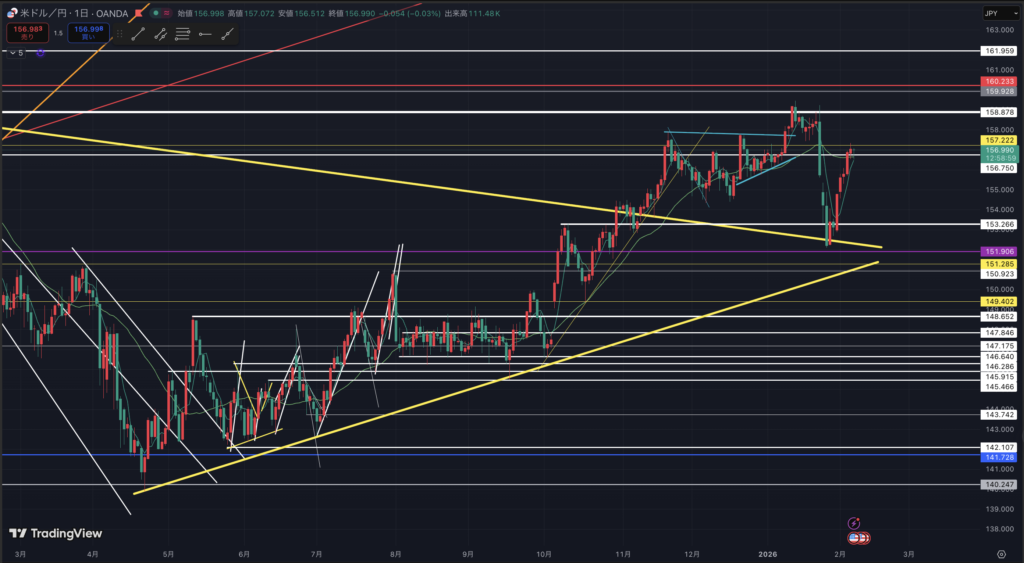 ドル円日足です。(18:01現在)