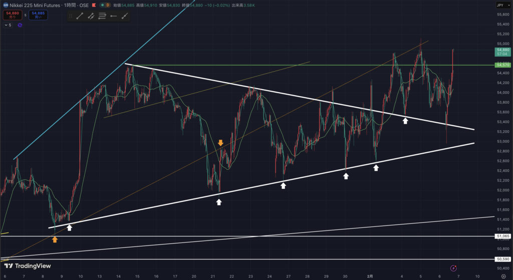 先物ミニの1時間足です。
