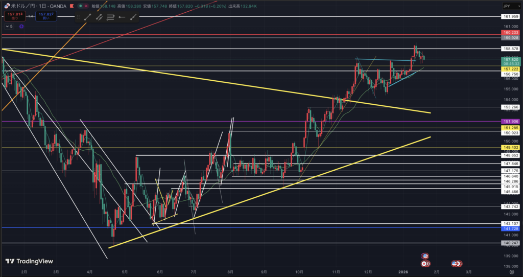 ドル円日足です。(22:13現在)