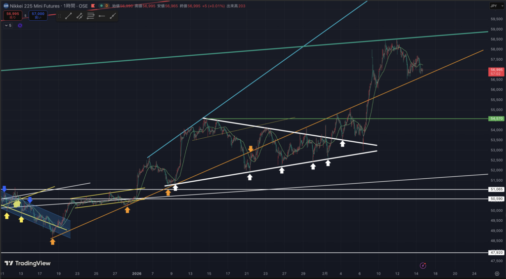 先物ミニの1時間足です。