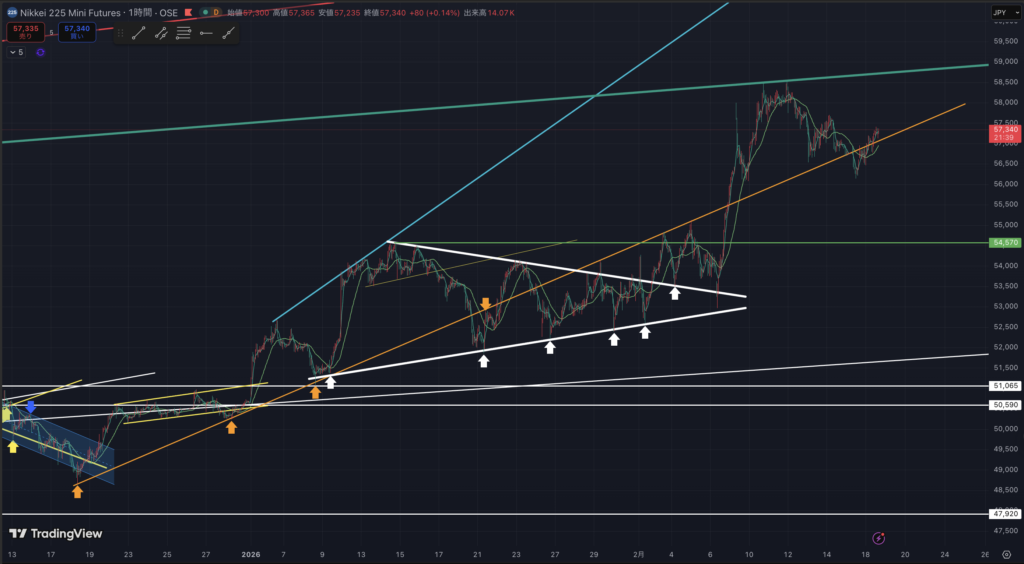 先物ミニの1時間足です。