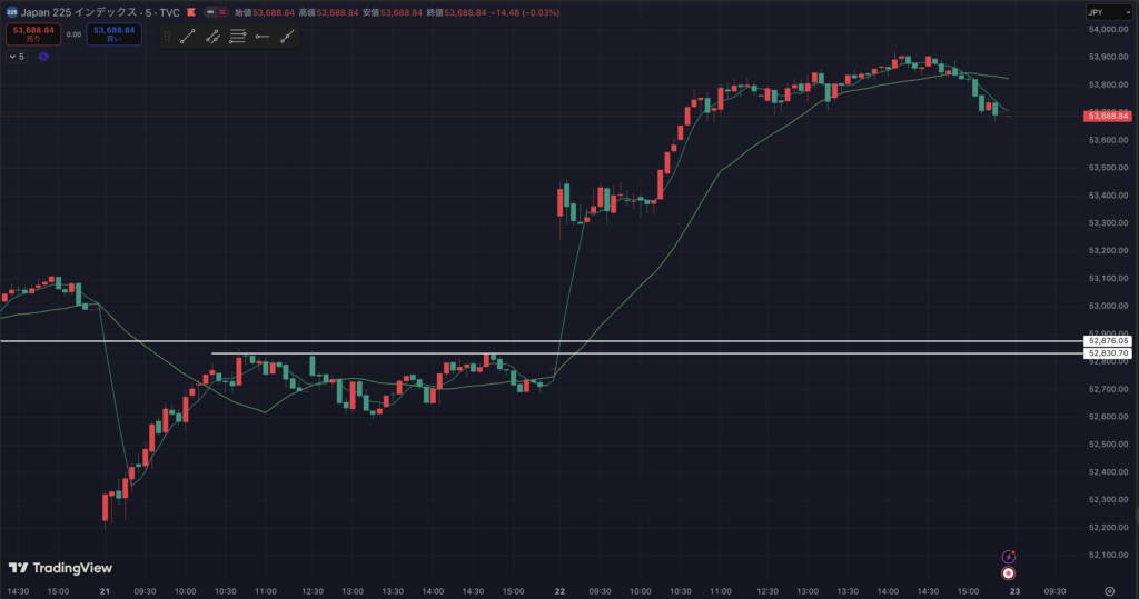 始値はちょうど5日線上。
