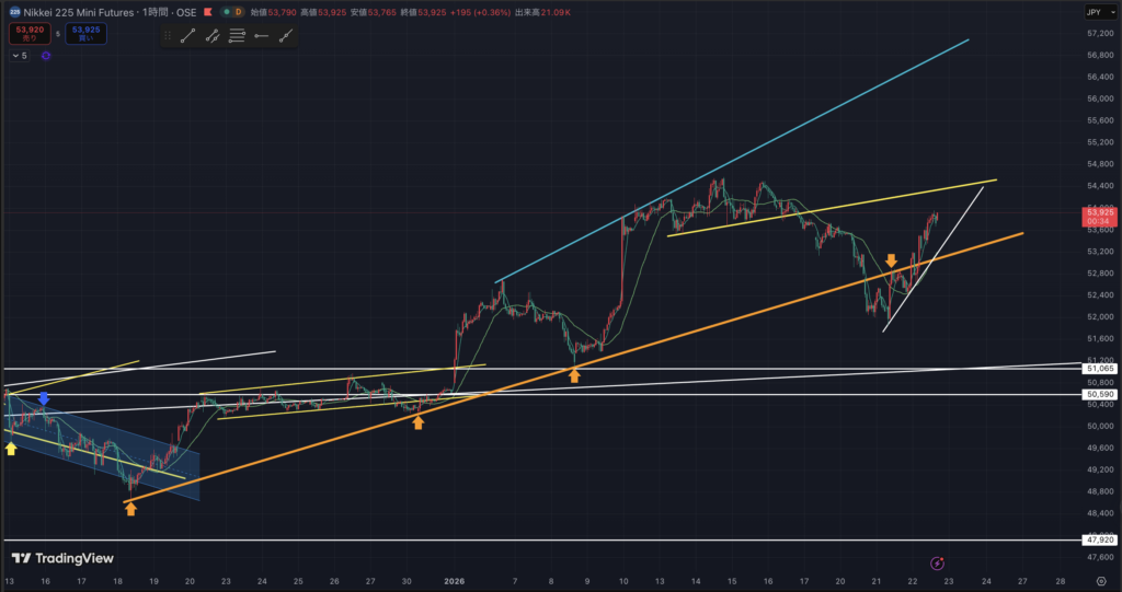 先物ミニの1時間足です。