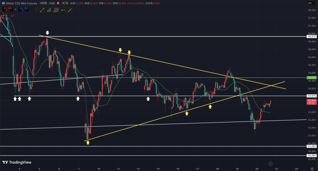 先物ミニの1時間足です。