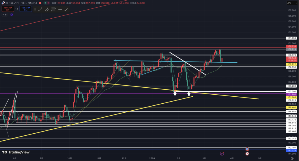 ドル円日足です。(17:31現在)